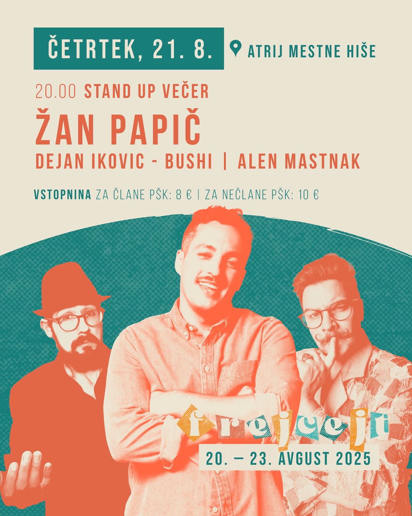 Vsestranski slovenski ustvarjalec, ki že več kot desetletje navdušuje kot stand-up komik, igralec, voditelj, pisec in podkaster. Na odru in pred kamero Žan spretno prepleta ostro družbeno opazovanje, iskreno samoironijo in toplino, s katero vedno znova vzpostavi pristen stik z občinstvom. Redno nastopa v gledaliških predstavah, ustvarja lastne stand-up turneje, sodeluje v televizijskih oddajah ter soustvarja enega najbolj priljubljenih podcastov v Sloveniji – Fejmiči, skupaj z Gašperjem Bergantom. Videli ste ga lahko že v predstavi Fejmiči, Buh pomagej, Shoes v glavo, Fantovščina, Nikoli ni prepozno in najnovejše Sam prjatla. Ob tem smo ga lahko spremljali tudi na turnejah Ičkoti1 in Ičkoti2, kjer je ekipa kar štirikrat razprodala dvorano Tivoli in dvakrat dnevno napolnila največje dvorane po vsej Sloveniji.