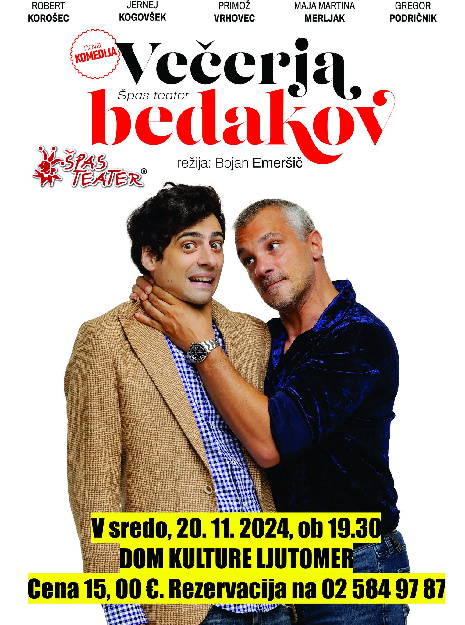 Vabljeni na ogled komedije z naslovom Večerja bedakov, ki se bo odvijala v sredo, 20. 11. 2024, ob 19.30 v Domu kulture Ljutomer. Cena vstopnice je 15€.