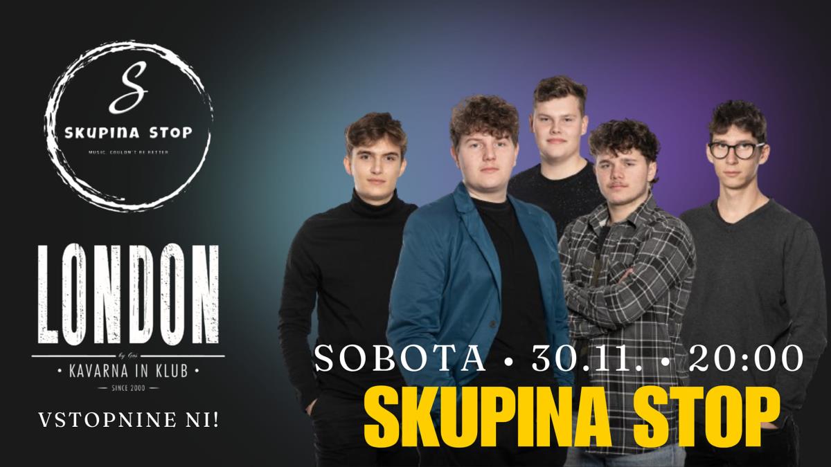 Vljudno vabljeni v London kavarno in klub, kjer bo nastopila skupina STOP, dne 30. novembra 2024, ob 20. uri. Vstop je prost.