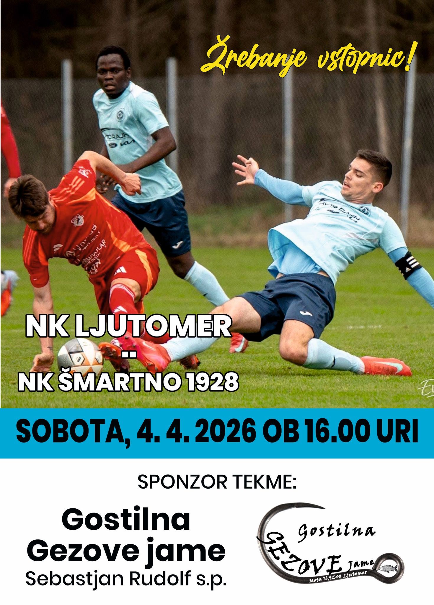 Vabljeni na nogometno tekmo, ki bo v soboto, 4. 4. 2026, ob 16. uri v Športno-reakcijskem centru Ljutomer.