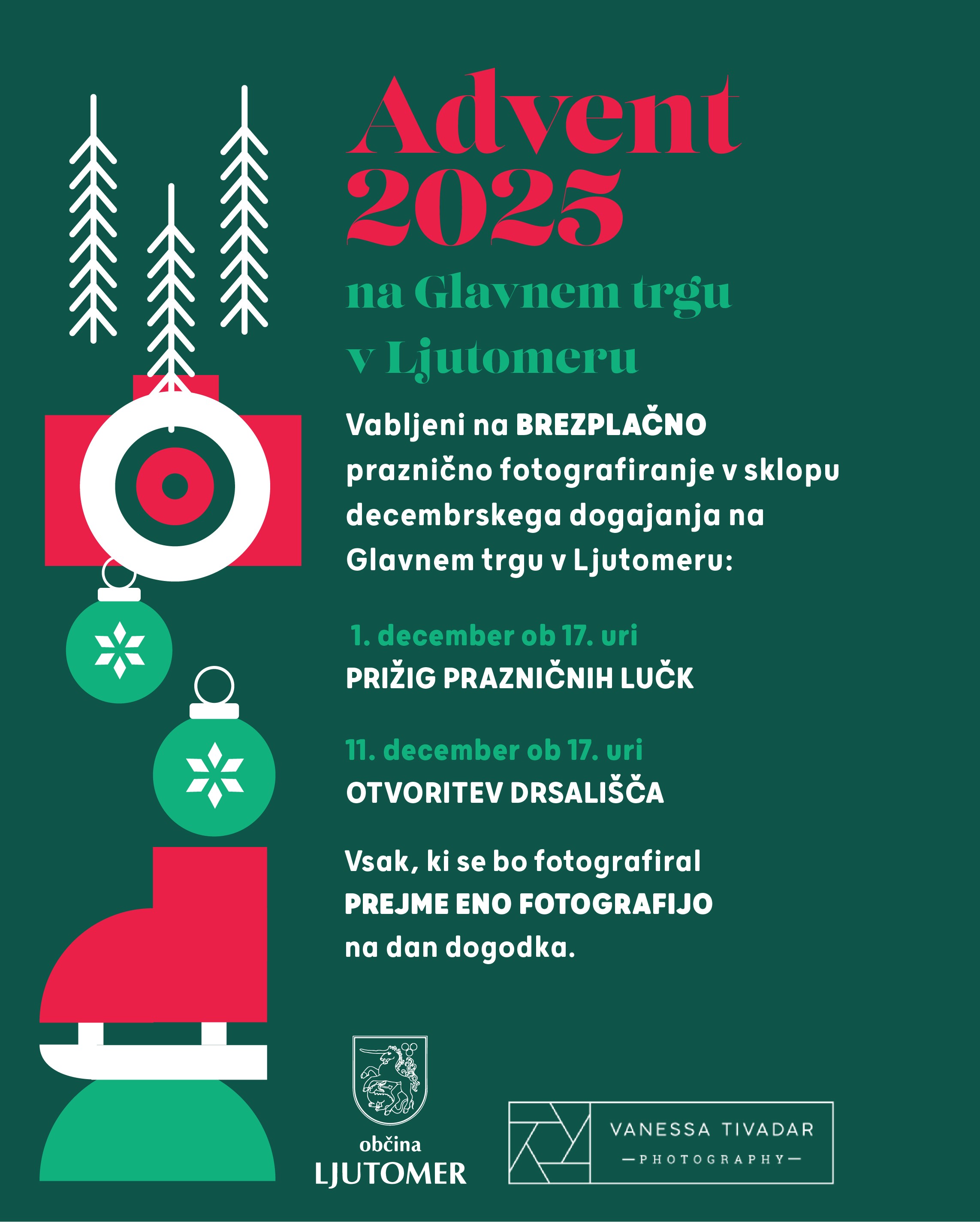 Vabljeni 11. 12. 2025 ob 17. uri na Glavni trg v Ljutomer na otvoritev drsališča in brezplačno praznično fotografiranje.
