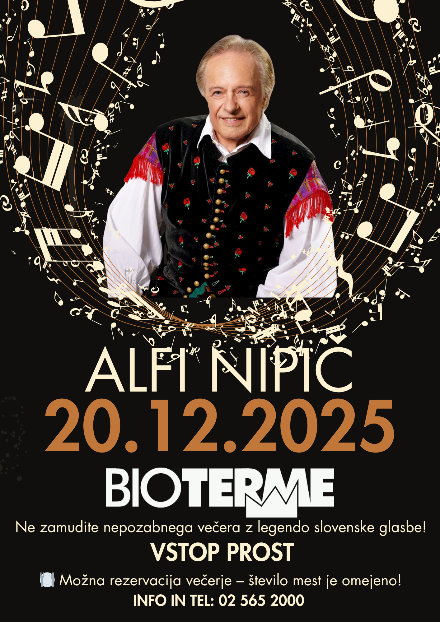 Pridružite se nam v restavraciji Bioterm 20. decembra, ko nas bo s svojimi uspešnicami ogrel legendarni Alfi Nipič!