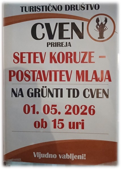 Vabljeni 1. 5. 2026 ob 15. uri na setev koruze in postavitev mlaja na Grüntu TD Cven.