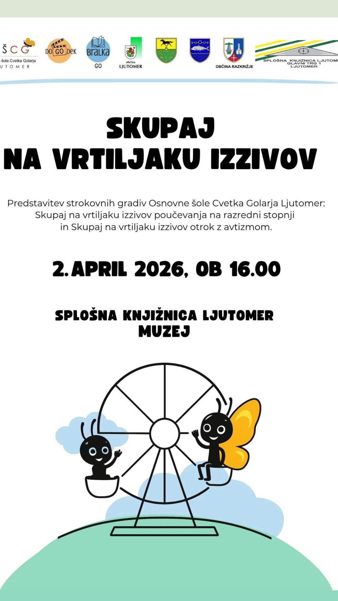 Vabljeni na predstavitev strokovnih gradiv Osnovne šole Cvetka Golarja Ljutomer, ki bo v četrtek, 2. 4. 2026, ob 16. uri v Splošni knjižnici Ljutomer.