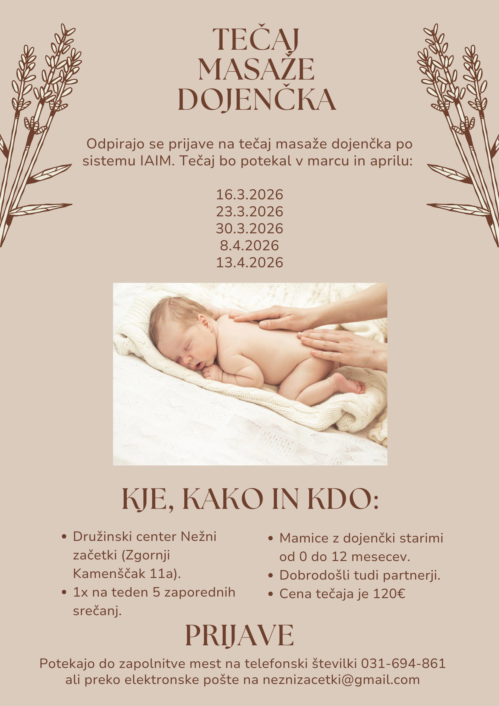 Vabljeni na Tečaj masaže dojenčka, ki bo potekal v marcu in aprilu v Družinskem centru Nežni začetki.