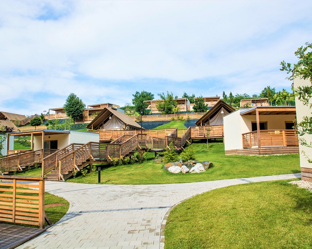 Bioterme is an ideal starting point for individual excursions, cycling, and hiking in the nearby and wider surroundings, which offer countless attractions for all generations. The Sunny Valley glamping village offers plenty of privacy in unspoiled nature. It features 22 glamping villas and 11 glamping tents of various sizes.