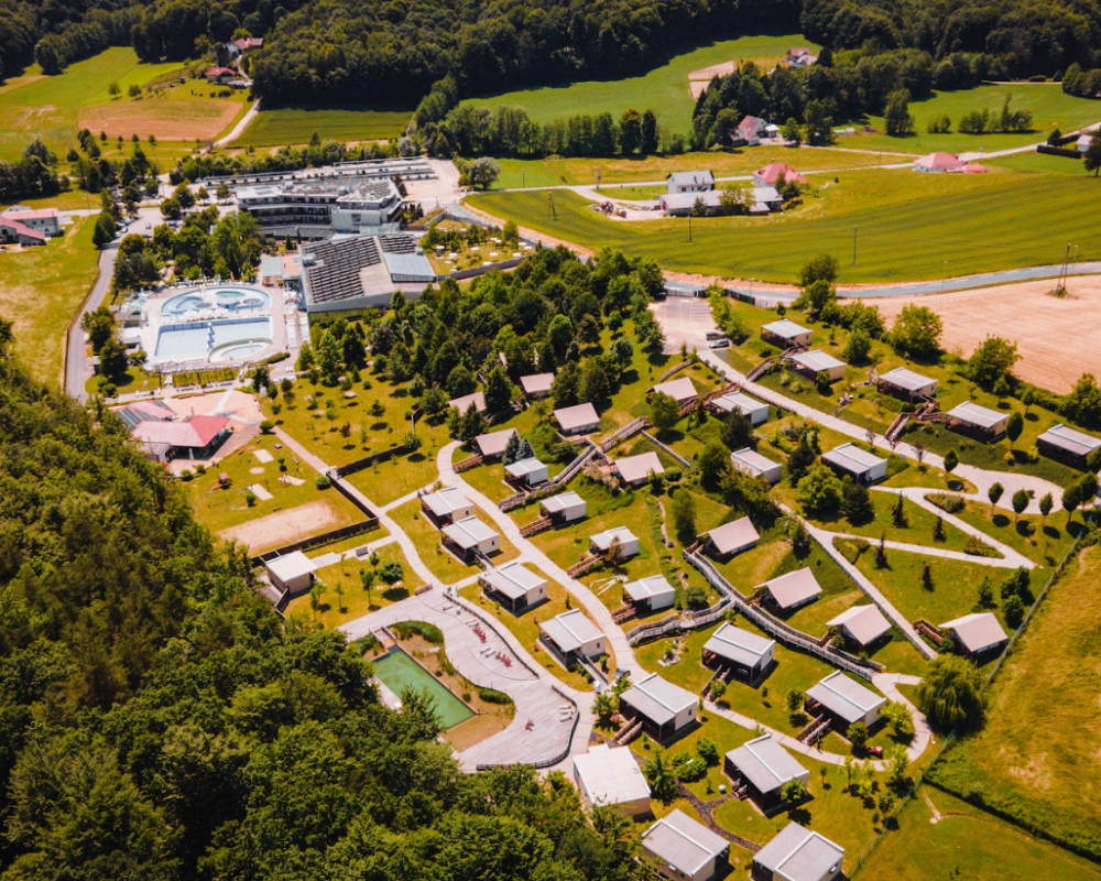 Bioterme, located in the heart of Prlekija within a landscape park, offers a perfect retreat amidst vineyards and fields, enriched with local Prlekija cuisine and friendly people. Accommodation is available at the Bioterme Hotel**, the Glamping Village Sunny Valley—which features seasonal villas and tents—and a motorhome stopover site.