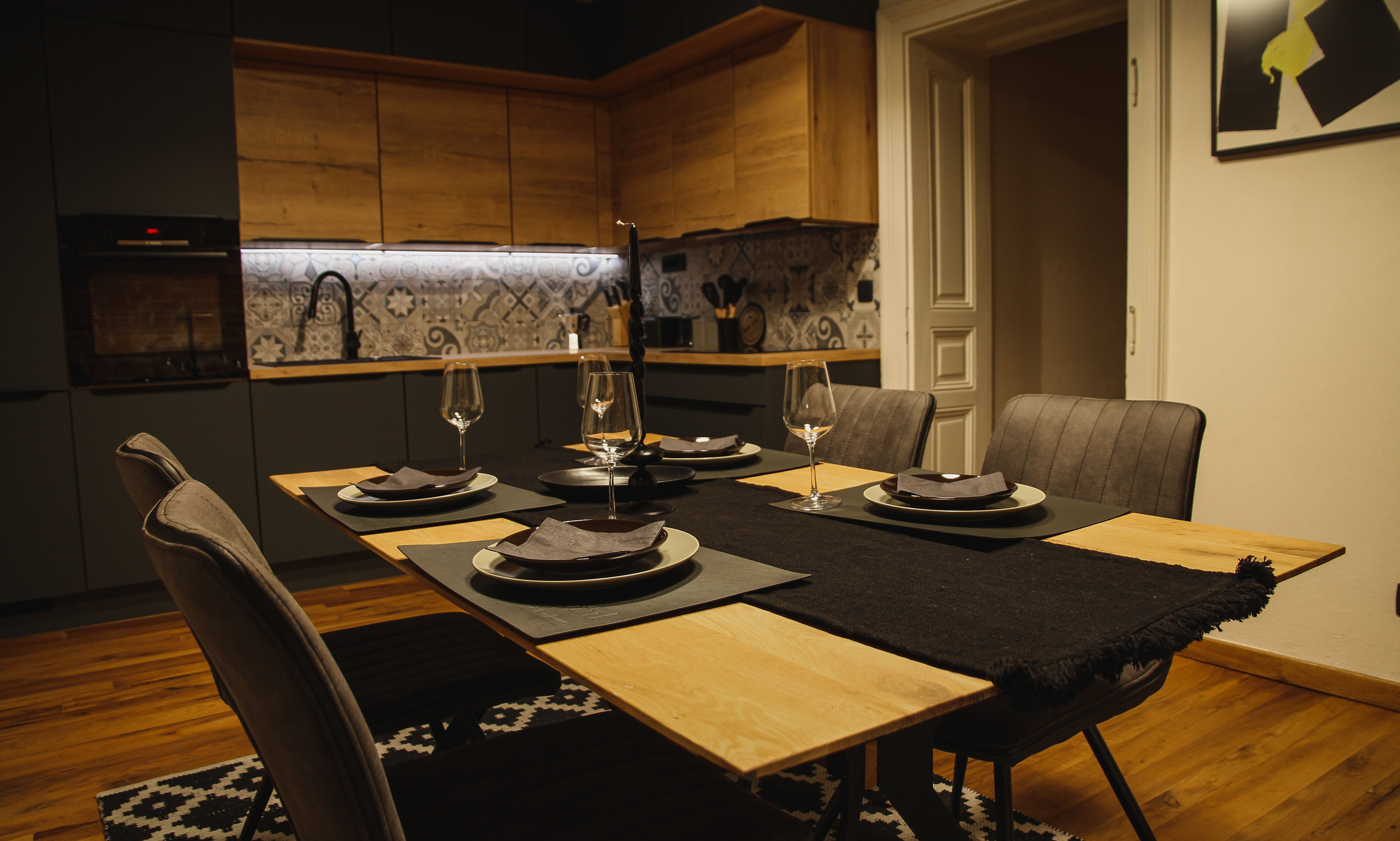 Povsem obnovljen in sodobno opremljen apartma se nahaja v osrčju nekdanjega trškega jedra Ljutomera. Hišo je leta 1905 dal v secesijskem slogu postaviti dr. Karol Grossmann, pionir slovenskega filma, ki je na dvorišču posnel enega izmed prvih treh slovenskih filmov, “Na domačem vrtu“. Pri Grossmannovih je nekaj mescev stanoval tudi artilerijski podoficir Fritz Lang, poznejši slavni filmski režiser. Častitljiva zgodovina in prijetna udobnost s sodobnim pridihom zagotavljata edinstveno bivanje v srcu Prlekije. Apartma je v neposredni bližini TICa, kjer si je možno sposoditi električna kolesa, saj je središče Ljutomera idealna točka za raziskovanje zelenega Pomurja z bogato kulinarično ponudbo. Do kraja Jeruzalem v Slovenskih goricah je 7 kilometrov, do termalnega kopališča Banovci 8, do Male Nedelje pa okrog 16 kilometrov.